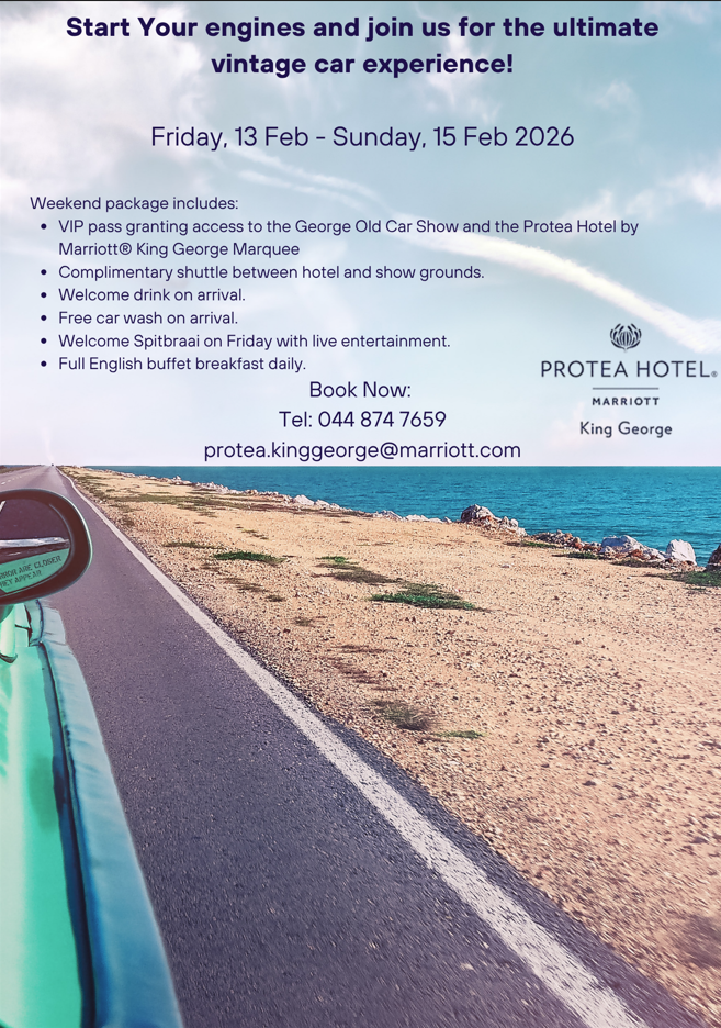 The George Old Car Show has grown into one of South Africa’s most celebrated motoring exhibitions, attracting collectors, restorers, and enthusiasts from across the country. It offers a nostalgic showcase of veteran, vintage, and classic cars, along with historic motorcycles, commercial vehicles, and tractors — each telling its own story in the evolution of motoring. Exhibitors are invited to register their vehicles and be part of this proud tradition. Whether your passion lies in the earliest motorcars that pioneered the roads, the timeless elegance of pre-war craftsmanship, or the iconic classics that defined later generations — the 2026 George Old Car Show is your opportunity to share your piece of motoring history with thousands of visitors. Join us in celebrating the spirit of innovation, adventure, and the enduring beauty of classic motoring.